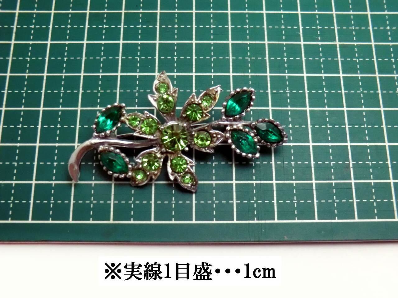 チェコガラス☆爽やかなグリーン ラインストーン ヴィンテージ フラワー ブローチ 1950s