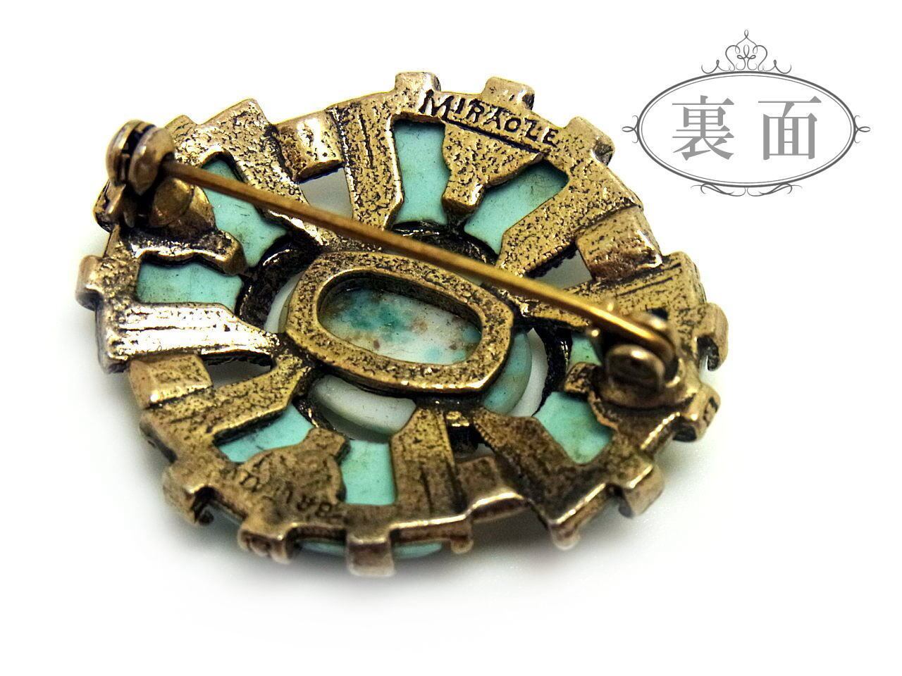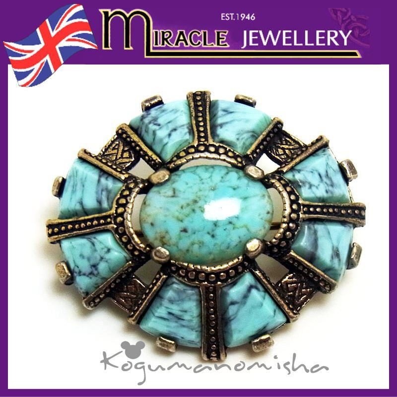 英国 MIRACLE ターコイズガラス ケルティック クロス ヴィンテージ ブローチ 1960s ケルト十字