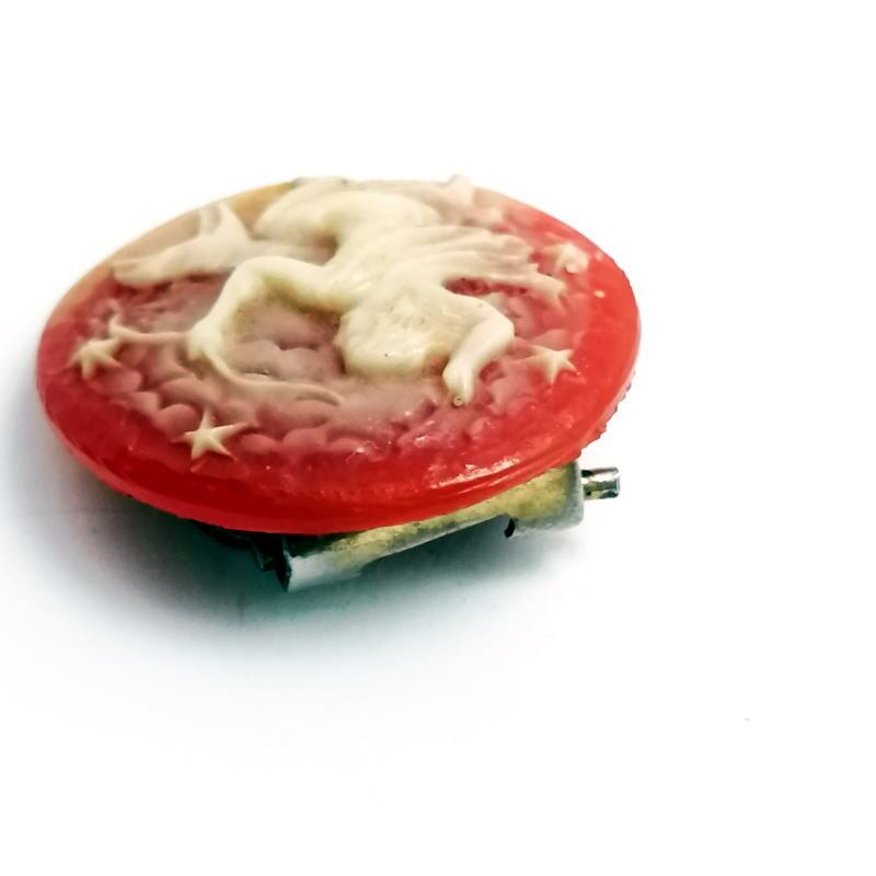 美しい褐色 いて座 ルーサイト カメオ ヴィンテージ スカーフクリップ 1950s ドレスクリップ 帯留めにも