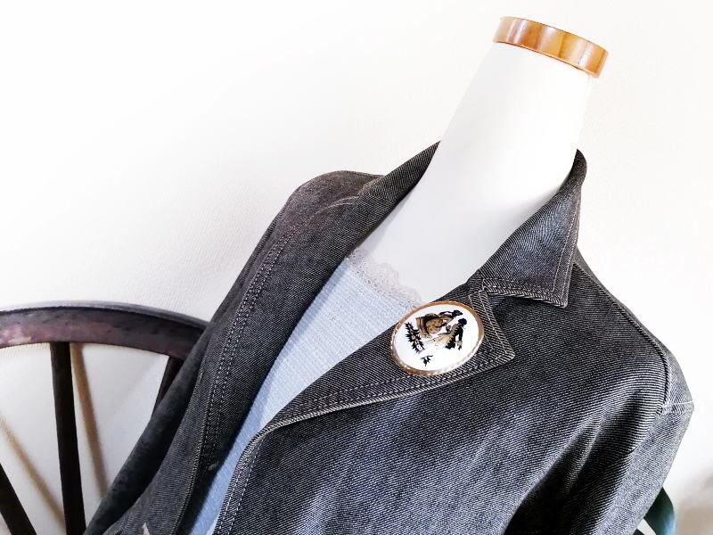 英国 レディ・エレノア★ボーンチャイナ 金箔 カップル 絵柄 ヴィンテージ ブローチ ヴィクトリアン 復刻