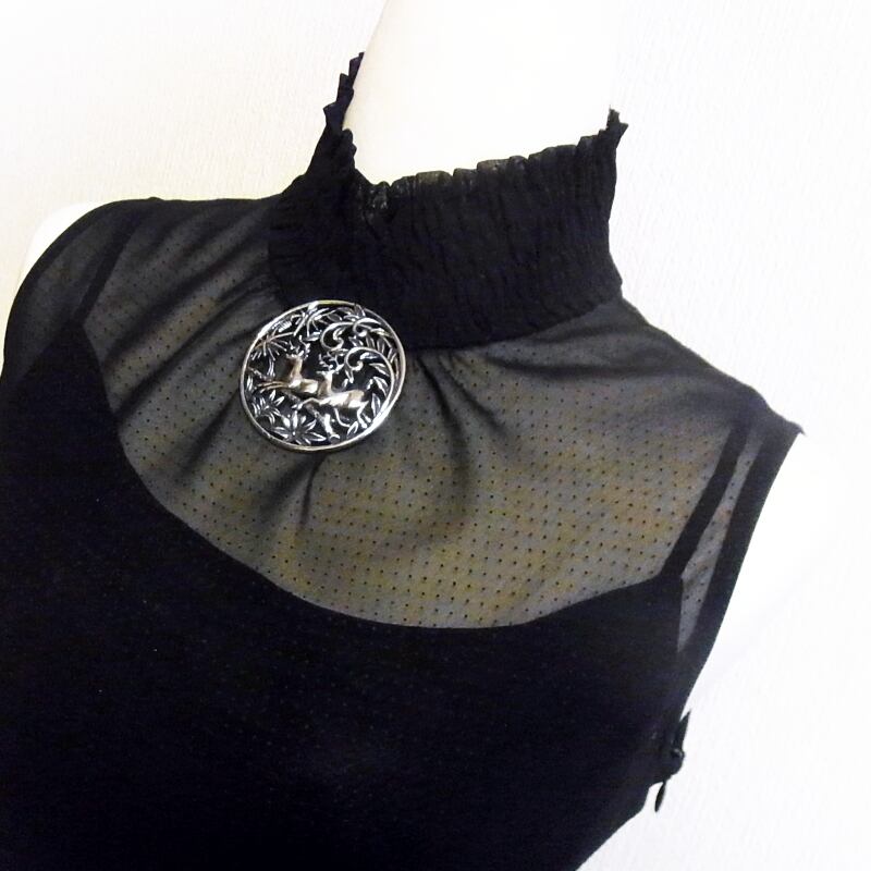 またブローチ裏側にフックがついていますので、お手持ちのチェーンをご利用頂くととネックペンダントとしてお使いいただけます。