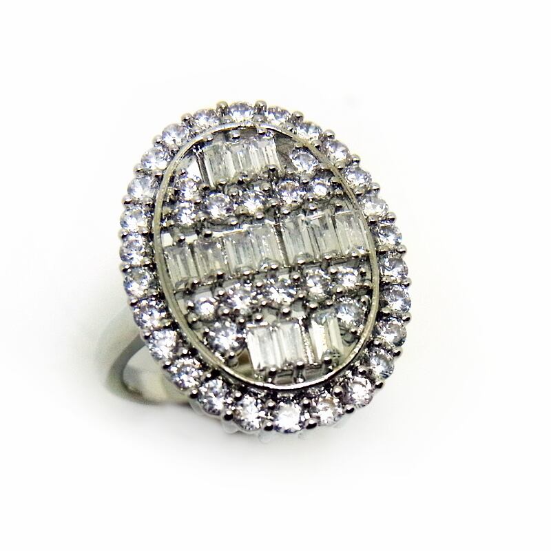 海外工房直輸入☆モダンなオーバルデザイン バゲットカット シンセティック ホワイトサファィア CZ SV925 リング #12