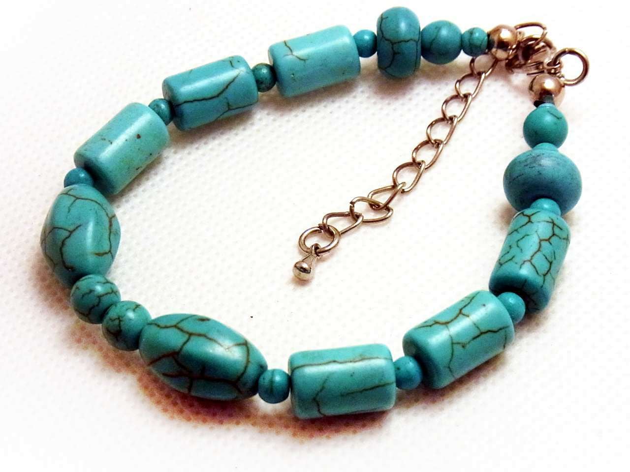 人工石の美しいターコイズストーンを用いた、カジュアルブレスレットです。