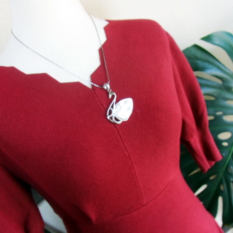 マザーオブパール★優美な白鳥 ヴィンテージ ペンダント 白蝶貝 スワン ペアシェイプ