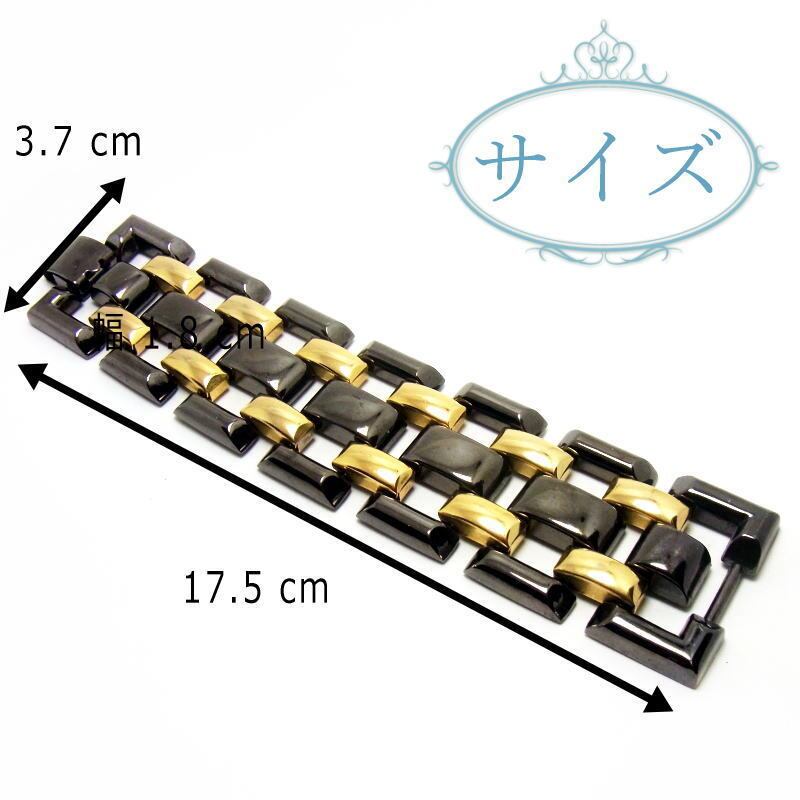 艶やかなガンメタカラーのクロムメタルとゴールドプレーテッドを用いた、大ぶりのメタルリンクブレスレットです。