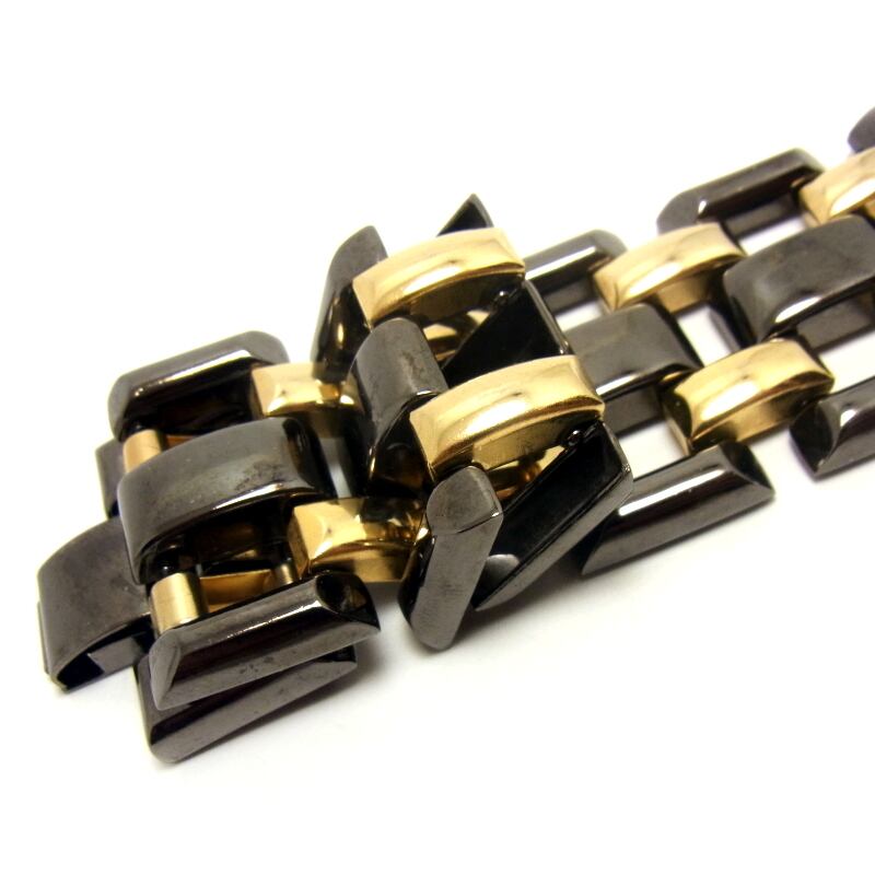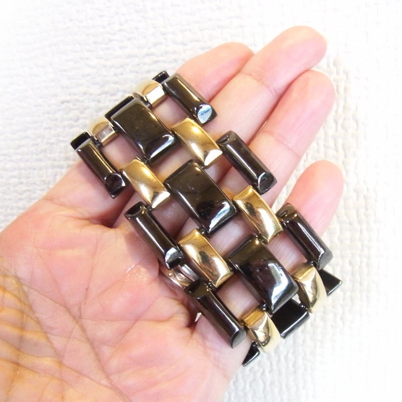 USAヴィンテージ★ブラック&ゴールドトーン メタルリンク ワイド ブレスレット 幅広