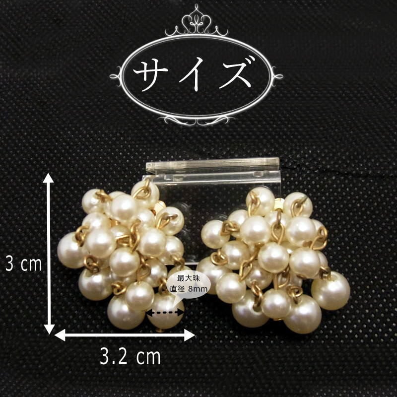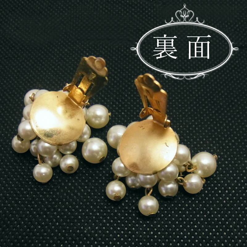 英国ヴィンテージ★鈴なりのフェイクパール クラスター ドロップ イヤリング HONGKONG刻印 1950s 卒業 入学式 謝恩会 | ヴィンテージコスチュームジュエリー こぐまのミーシャ♪【misha-antiques】