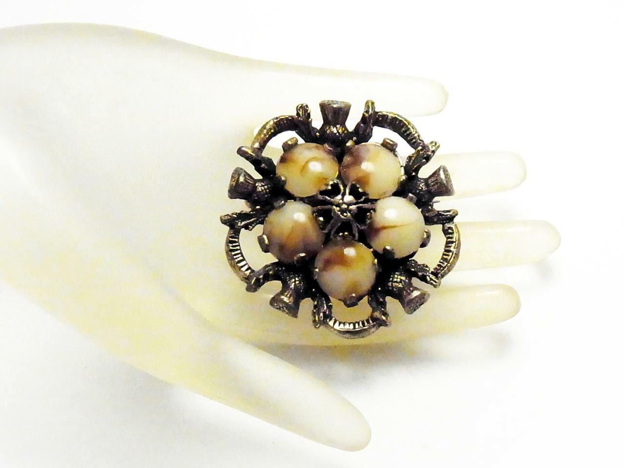 英国 MIRACLE★マーブルアゲートカボッションガラス あざみ スコティッシュ ブローチ 1960s ケルティック フラワーモチーフ