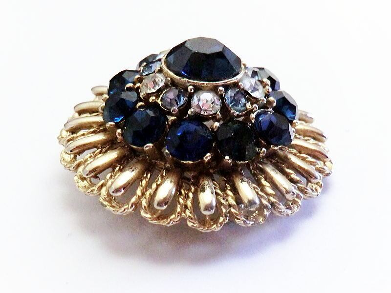 英国SPHINX ヴィンテージ★サファィアブルークリスタル☆ドーム型クラスターブローチ,1950's