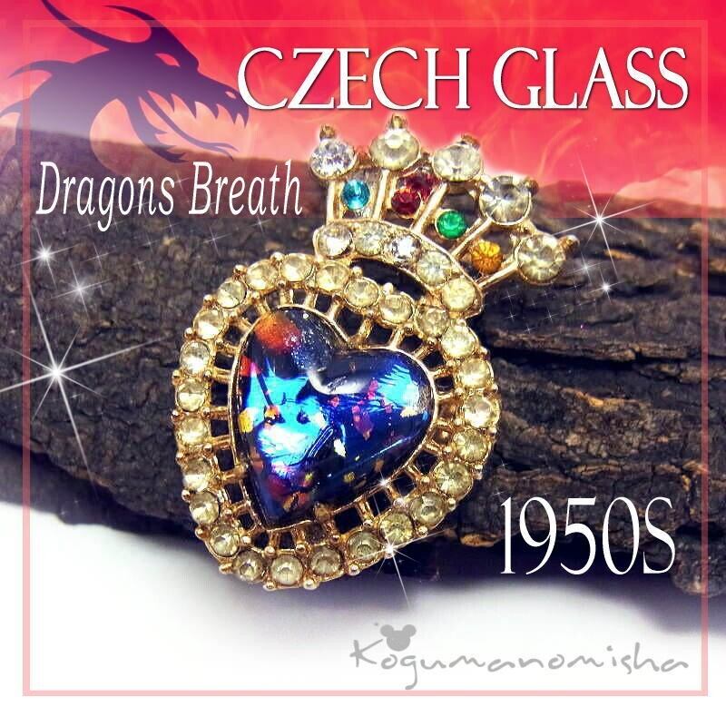 魅惑のドラゴンズブレス★ハートシェイプ カボッション ラッケンブース ヴィンテージ ブローチ 1950s ハットピン